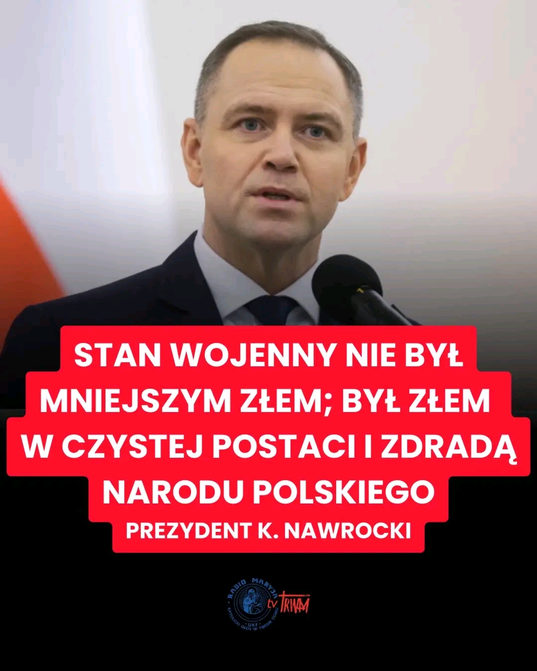 ‼️PREZYDENT K. NAWROCKI: STAN WOJENNY NIE BYŁ MNIEJSZYM ZŁEM; BYŁ ZŁEM W CZYSTEJ POSTACI I ZDRADĄ NARODU POLSKIEGO‼️🇵🇱 📍Prezydent Karol Nawrocki podkreślił w sobotę, że stan wojenny w Polsce nie był mniejszym złem, tylko zdradą narodu polskiego i złem w czystej postaci. Podkreślił, że Polska nigdy nie zapomni ani o ofiarach stanu wojennego, ani o jego sprawcach. Więcej👇🏻 🔗🔗