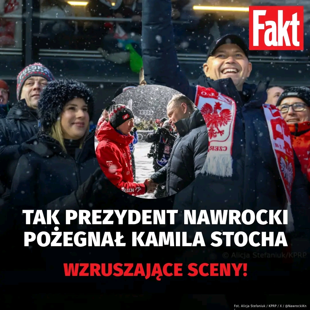 Po konkursie, który Stoch zakończył na 42. pozycji, odbyła się specjalna uroczystość pożegnania trzykrotnego mistrza olimpijskiego z kibicami. A to wszystko według scenariusza przygotowanego przez samego skoczka i jego żonę Ewę Bilan-Stoch. Pojawiły się okrzyki: “Dziękujemy!”, “Kamil! Kamil!”, a także zaśpiewano “Sto lat!”. 38-latek z oczami pełnymi łez wzruszenia ruszył wzdłuż zeskoku i pozdrowił wszystkich obecnych, a następnie się im ukłonił. Następnie odśpiewano “Mazurka Dąbrowskiego”, chwilę później do skoczka podszedł prezydent Nawrocki, który go uściskał i złożył gratulacje oraz podziękowania.