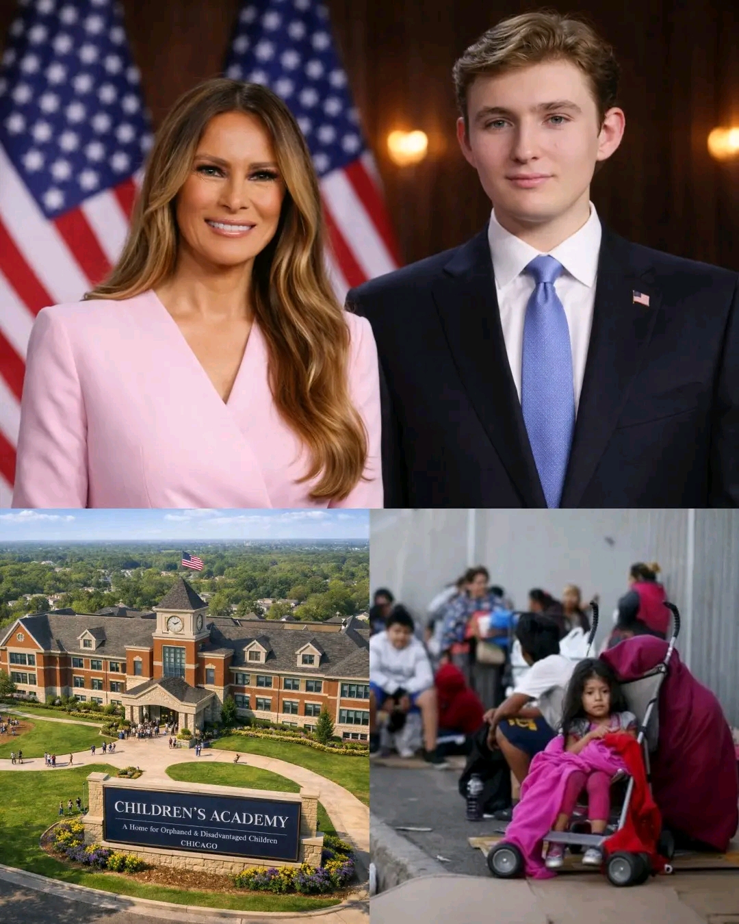While America remained absorbed in loud headlines, Melania Trump stood beside her son, Barron Trump, in a discreet room. No cameras crowding in. No long speeches. Just a pen touching paper — confirming a $175 million agreement to build a boarding school in Chicago, dedicated exclusively to orphans and children who have lost their chance at education.