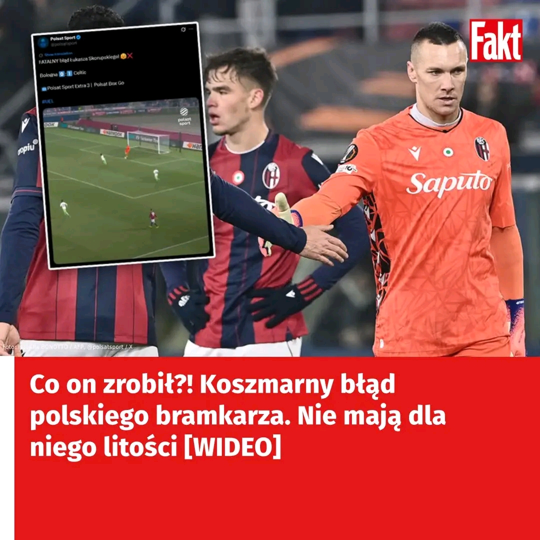 Powrót Łukasza Skorupskiego do bramki Bolonii przerodził się w prawdziwy dramat. Polski bramkarz już na początku meczu z Celtikiem w Lidze Europy popełnił katastrofalny błąd. Rywale trafili do pustej bramki, a włoskie media ostro rozprawiły się z bramkarzem reprezentacji Polski.