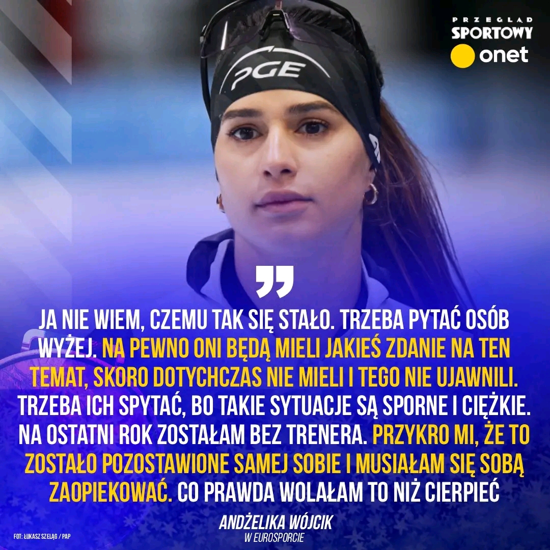 Nie mam już żadnego powołania z kalendarza. Mój sezon się skończył. (…) Ale mnie pan dziennikarz ciągnie za język. Na pewno będę się rozwijać sportowo. Po tak ciężkim czteroleciu i tak ciężkim okresie, w tym sezonie… Może po prostu to powiem, bo w mediach i tak mogłoby to wyjść. Ten sezon przygotowywałam się sama bez trenera od początku cyklu Pucharu Świata. Zostałam postawiona w takiej sytuacji, gdzie jakby mi ktoś trzy lata temu powiedział, że na ostatni rok czterolecia zostanę sama sobie… No jest to przykre po prostu — powiedziała na gorąco Andżelika Wójcik w Eurosporcie.