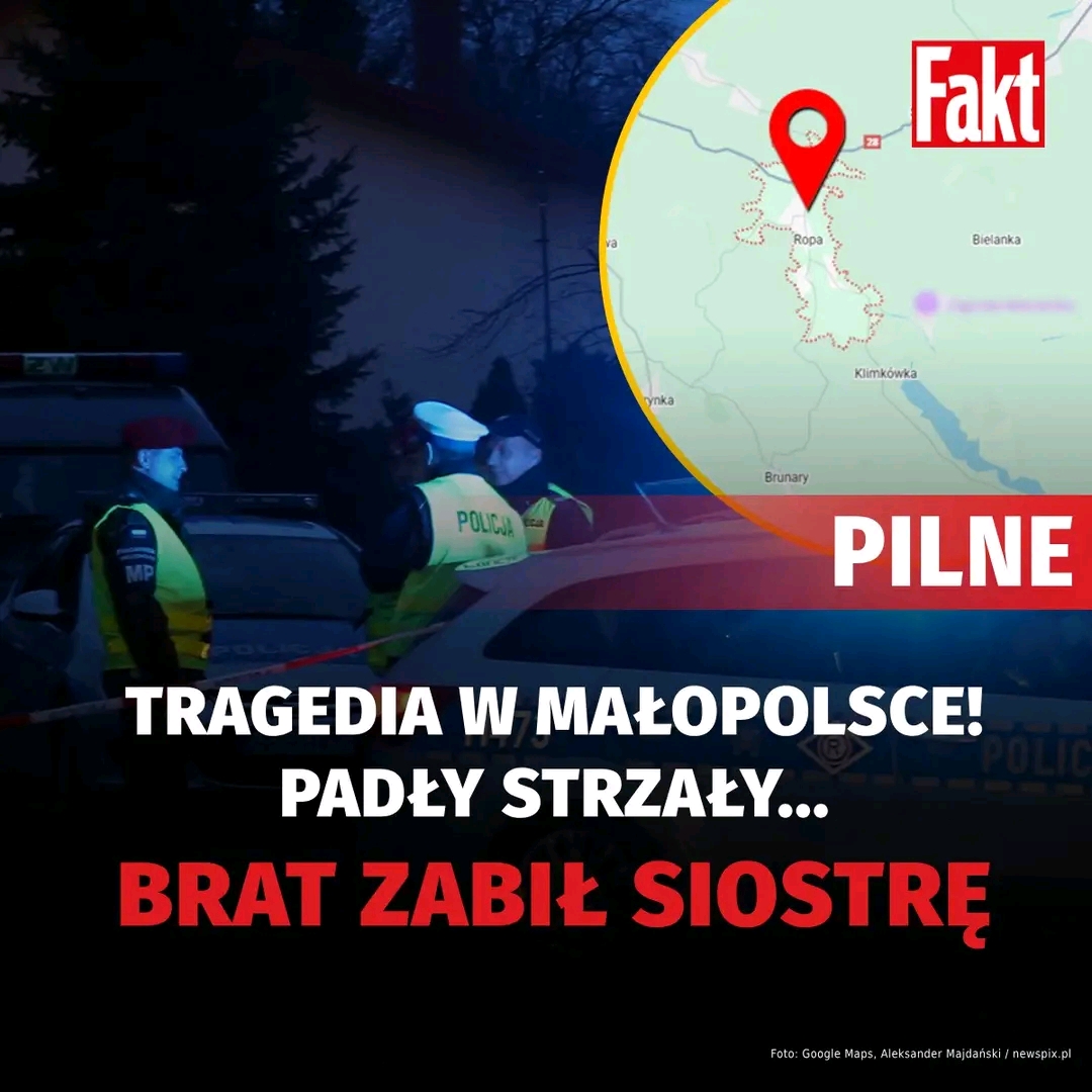 Dramatyczne sceny rozegrały się dziś w miejscowości Ropa (woj. małopolskie). W jednym z domów została zastrzelona 80-letnia kobieta. Jak ustalił “Fakt”, policja zatrzymała jej 90-letniego brata, który — według śledczych — miał pociągnąć za spust.