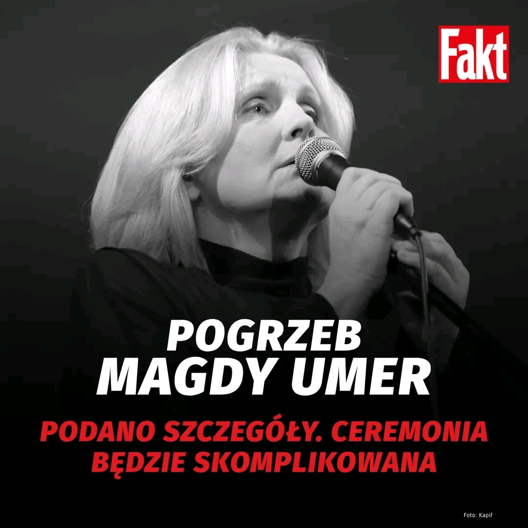 W piątek, 12 grudnia 2025 r. media poinformowały o śmierci Magdy Umer, jednej z najbardziej cenionych postaci polskiej sceny muzycznej. Informację o odejściu artystki potwierdzili jej synowie — Mateusz Pohoryles i Franciszek Przeradzki. Umer zmarła w wieku 76 lat. Wiemy, kiedy odbędzie się jej pogrzeb. Ceremonia będzie skomplikowana. Jak dowiedział się “Fakt”, uroczystości odbędą się w sali pożegnań na warszawskich Powązkach Wojskowych, jednak artystka nie zostanie pochowana na tym cmentarzu.