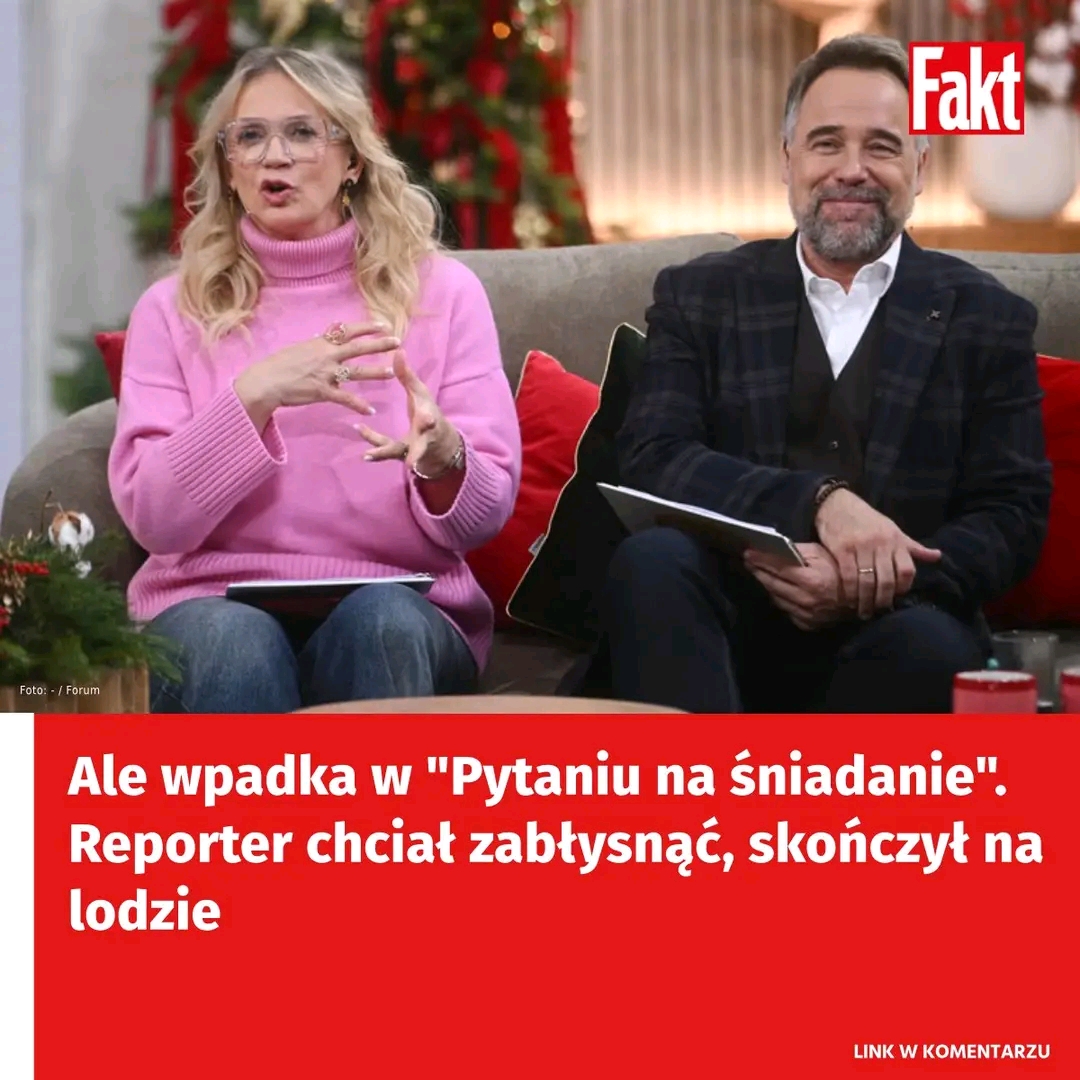 Renata Aleksander mówiła o determinacji młodych sportowców. — Bierzcie to wszystko w swoje ręce i naprawdę walczcie o swoje, jak Emma będzie walczyć o swoje — podkreślała na antenie. Kiedy wydawało się, że materiał właśnie dobiega do spokojnego końca, reporter śniadaniówki Mateusz Jędraś postanowił… spróbować swoich sił na lodzie.