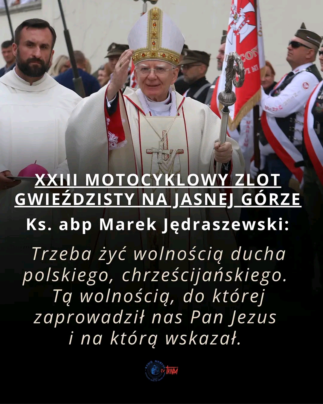 🙏🏍️XXIII Motocyklowy Zlot Gwieździsty na Jasnej Górze. 🔹Na Jasnej Górze odbył się XXIII Motocyklowy Zlot Gwieździsty organizowany przez Stowarzyszenie Międzynarodowy Motocyklowy Rajd Katyński. 🔹Ks. abp Marek Jędraszewski w homilii apelował o pamięć historyczną, a także ochronę ludzkiego życia. Więcej🔗