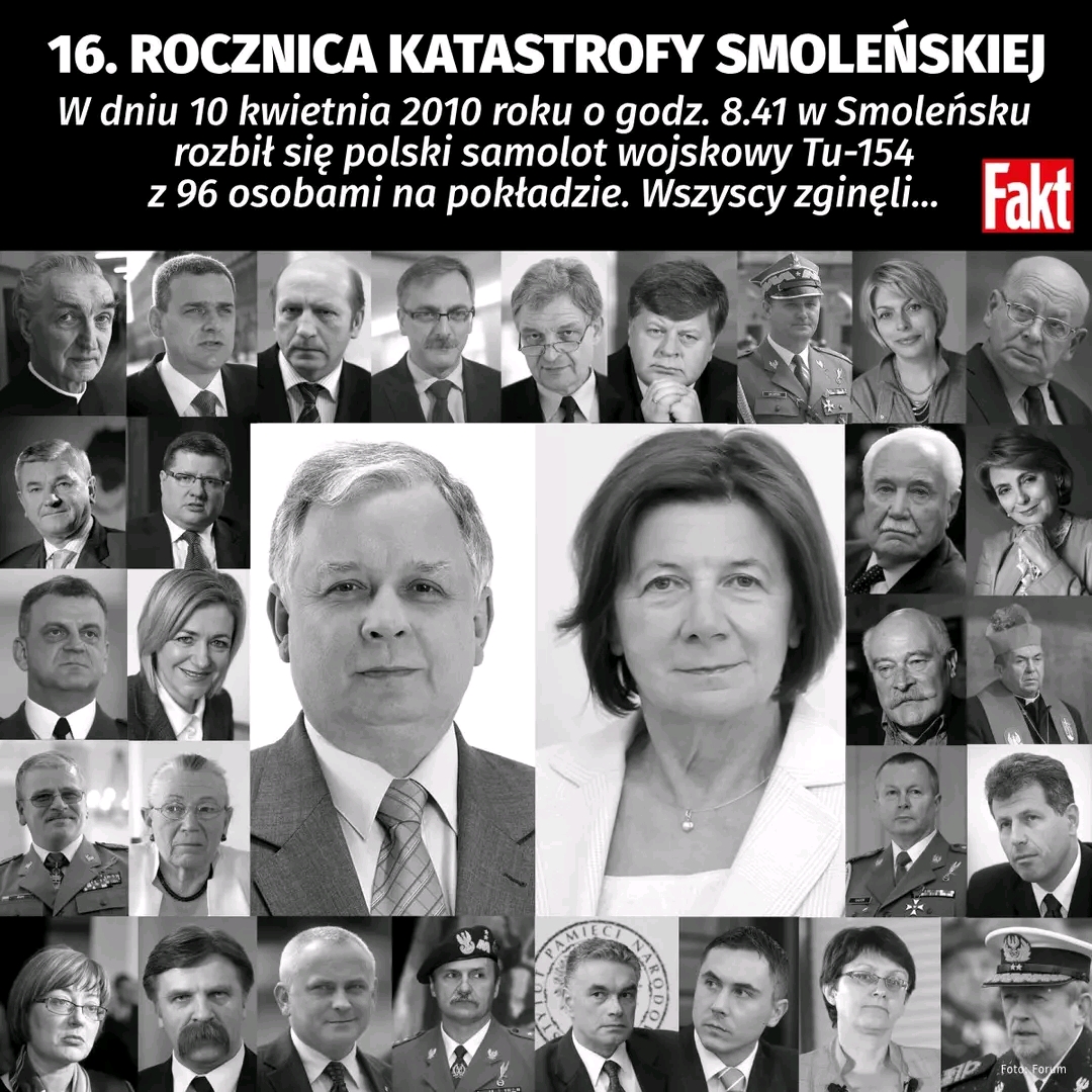 🟥 16 lat temu w katastrofie samolotu pod Smoleńskiem zginęło 96 osób, w tym prezydent Lech Kaczyński i jego małżonka Maria, najwyżsi dowódcy Wojska Polskiego, ostatni prezydent RP na uchodźstwie Ryszard Kaczorowski, duchowni, weterani Armii Krajowej i Sybiracy 🕯️🇵🇱 Pamięć o tej tragedii wciąż jest żywa. Dziś znów wracają emocje i wspomnienia