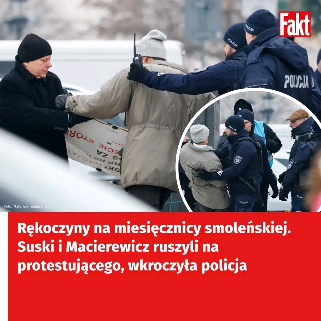 🟥 Awantura pod pomnikiem smoleńskim. Suski rzucił się na protestującego. Rozdzielała ich policja ➡️