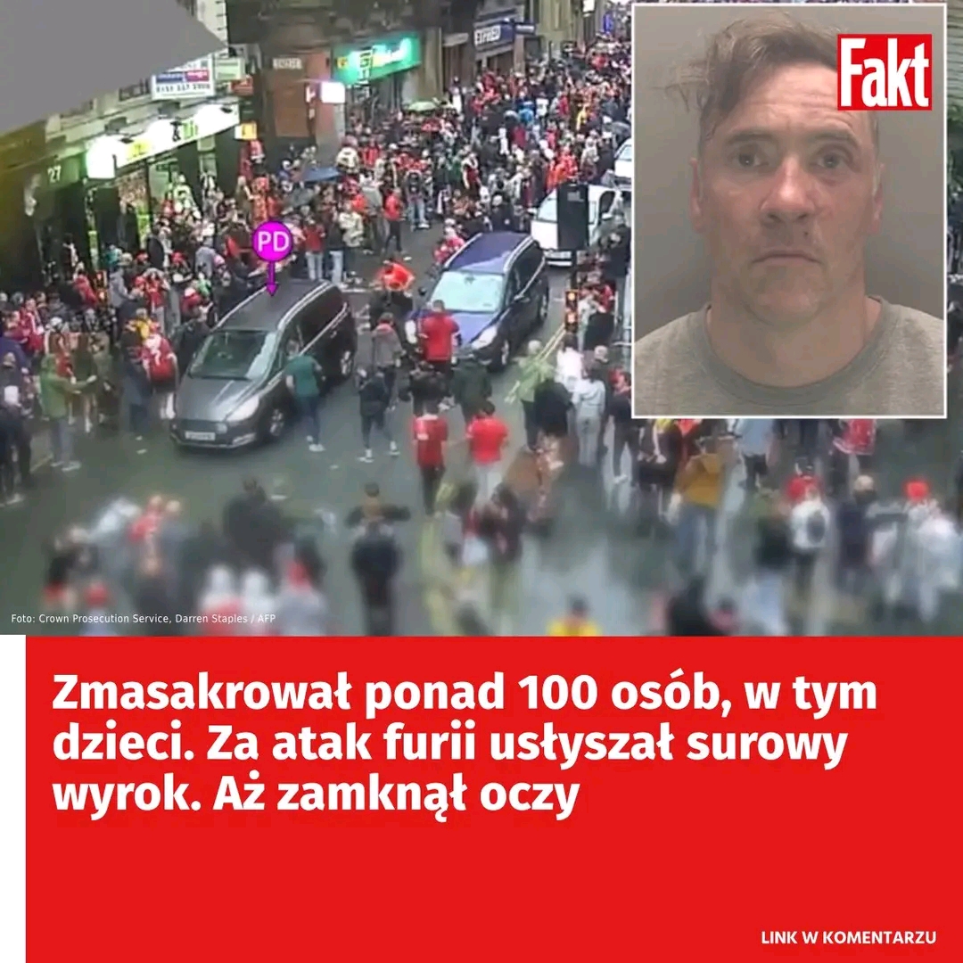 Sąd w Liverpoolu wydał wyrok w jednej z najbardziej wstrząsających spraw ostatnich lat. Dotyczy ona dramatycznych wydarzeń, do których doszło podczas fety z okazji mistrzostwa Anglii wywalczonego przez Liverpool FC. Odpowiedzialność karną poniósł 54-letni Paul Doyle, mieszkaniec Burghill Road, który wjechał samochodem w tłum świętujących kibiców.