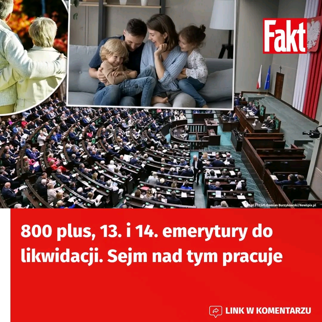 800 plus, 13. i 14. emerytury do likwidacji. Sejm nad tym pracuje