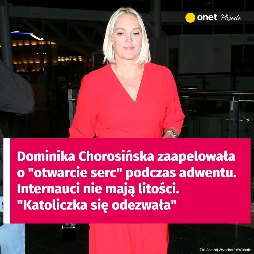 Dominika Chorosińska rozpoczęła adwent pełnym patosu apelem o “otwarcie serc” i “wewnętrzne wyciszenie”. Nie spodziewała się jednak, że jej słowa wywołają prawdziwą lawinę krytyki. Pod postem aktorki i posłanki PiS rozgorzała burzliwa dyskusja, w której internauci zarzucali jej hipokryzję.