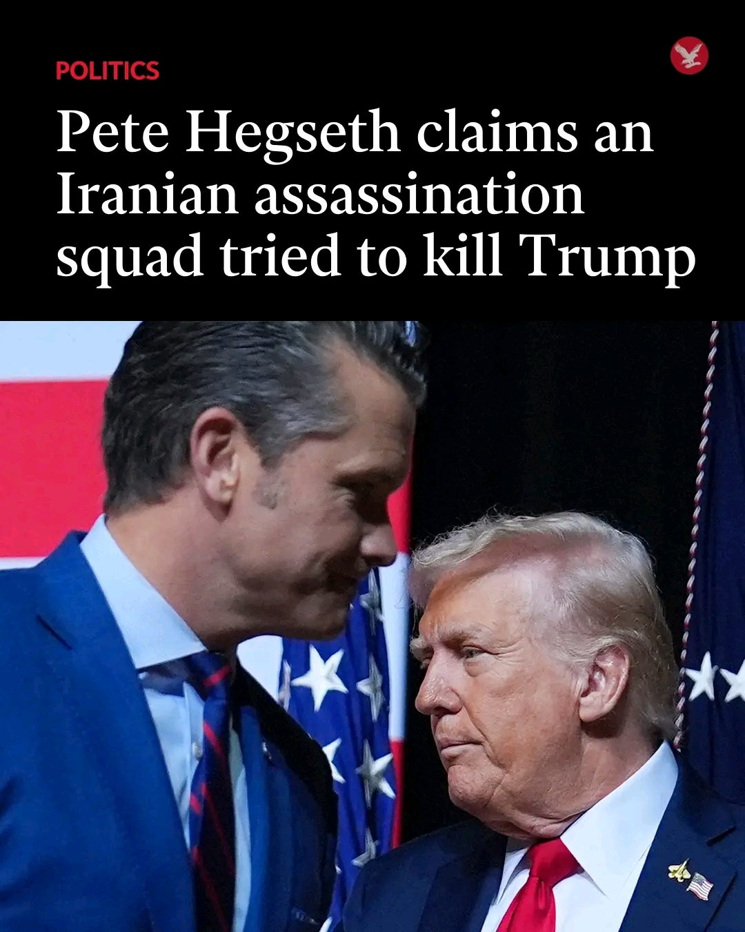 Hegseth, who wore a red-white-and-blue tie and pocket square, described the killing of an unnamed Iranian who headed a unit that attempted to assassinate Trump in personal terms, even as he stressed the official was not the initial focus of the war.