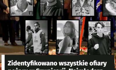 Po tragicznym pożarze w szwajcarskim klubie “Le Constellation” zidentyfikowano już ciała wszystkich 40 ofiar śmiertelnych — poinformowała policja kantonu Valais. Wśród nich jest 21 obywateli Szwajcarii,...