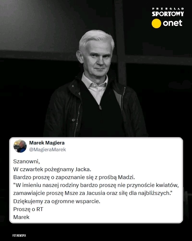 Teraz Marek Magiera zamieścił w sieci wyjątkowy apel. “Szanowni, W czwartek pożegnamy Jacka. Bardzo proszę o zapoznanie się z prośbą Madzi. »W imieniu naszej rodziny bardzo proszę, nie przynoście kwiatów, zamawiajcie, proszę msze za Jacusia oraz siłę dla najbliższych«. Dziękujemy za ogromne wsparcie” — napisał Marek Magiera na platformie X.