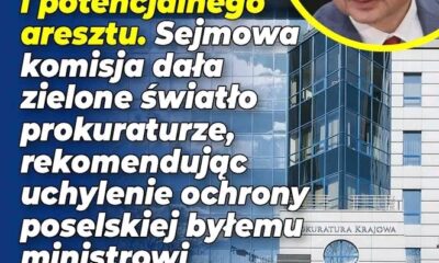Zbigniew Ziobro jest o krok bliżej utraty immunitetu i potencjalnego aresztu. Sejmowa komisja dała zielone światło prokuraturze, rekomendując uchylenie ochrony poselskiej byłemu ministrowi w związku z...
