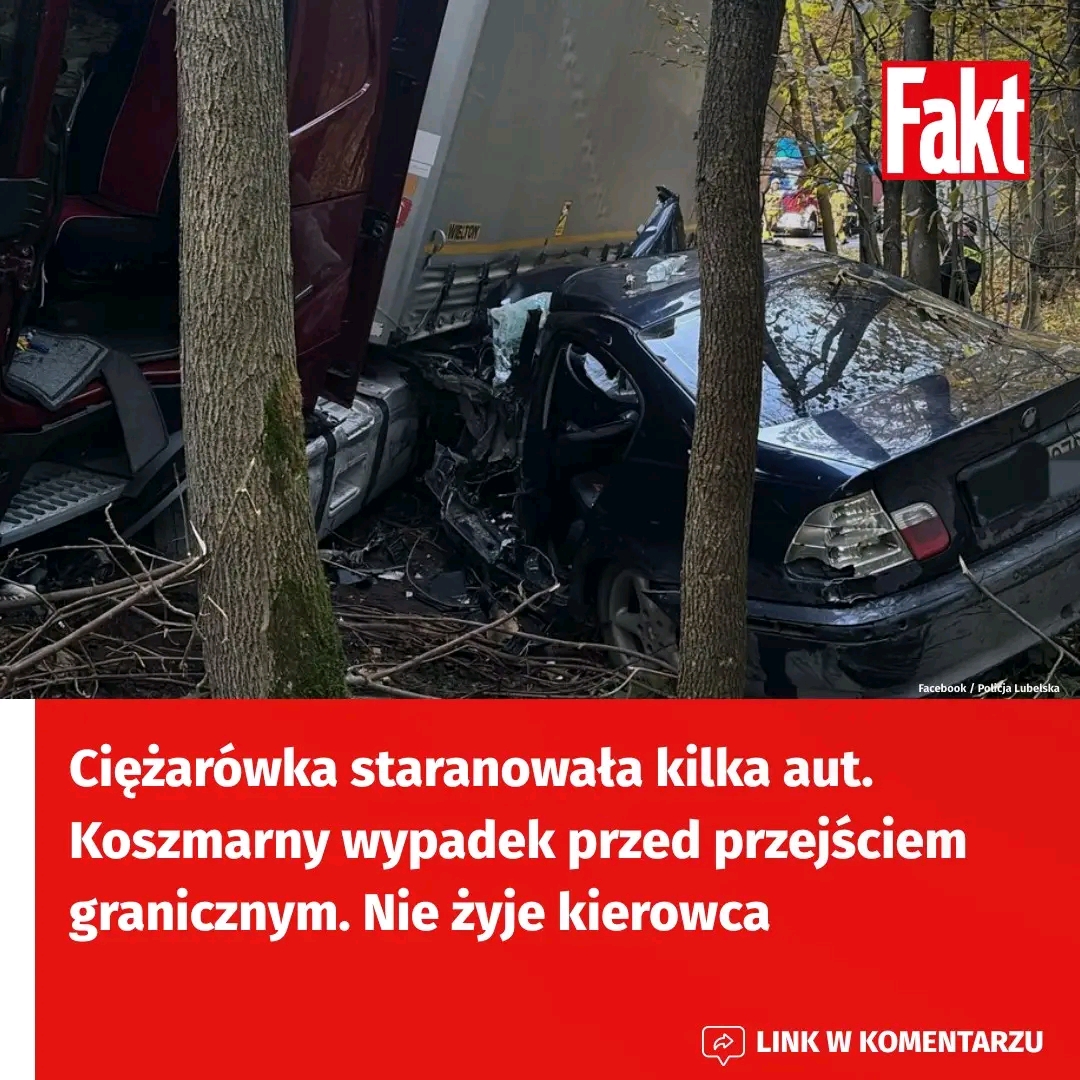 Kierowca ciężarówki, obywatel Ukrainy, zginął po tym, jak w miejscowości Zatyle (woj. lubelskie) przy przejściu granicznym staranował kilka samochodów. Na drodze krajowej nr 17 występowały duże utrudnienia. Patrząc na zdjęcia, niewiarygodne wydaje się, że nie zginął nikt więcej…
