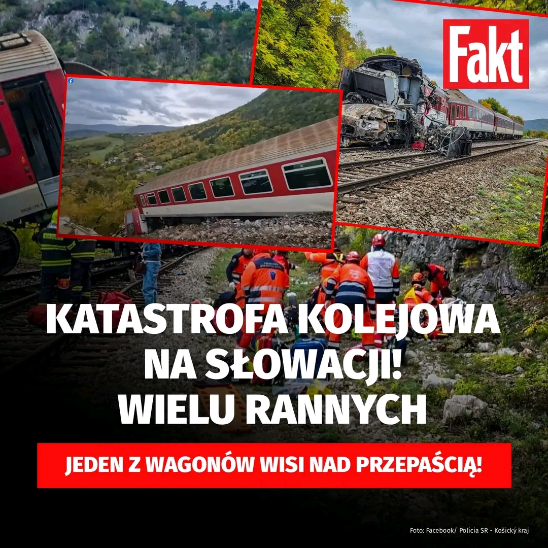 W pobliżu wsi Jablonov nad Turňo na Słowacji doszło do zderzenia dwóch nadjeżdżających z naprzeciwka pociągów ekspresowych. Jak wynika z relacji lokalnych mediów, jeden ze składów zawisł nad przepaścią. Około 20 osób jest rannych.