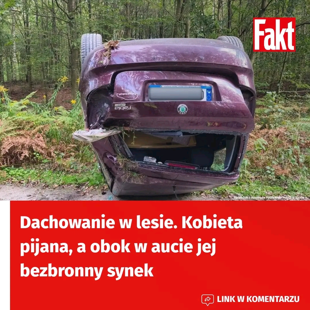 Dachowanie w lesie. Kobieta pijana, a obok w aucie jej bezbronny synek