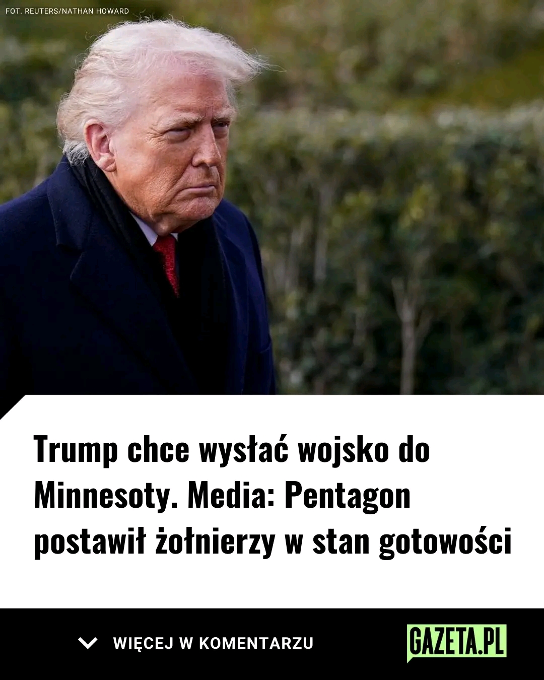 Według nieoficjalnych doniesień “Washington Post” Pentagon wydał rozkaz skierowany do około 1500 amerykańskich żołnierzy, aby przygotowali się do ewentualnego wyjazdu do Minnesoty. Biały Dom w oświadczeniu dla dziennikarzy stwierdził, że wspomniany departament zazwyczaj “jest przygotowany na każdą decyzję, którą prezydent może podjąć lub nie podjąć”. Przypomnijmy, że Donald Trump w czwartek 15 stycznia zapowiedział, że jeżeli politycy z Minnesoty nie powstrzymają protestujących, powoła się na ustawę, która daje mu prawo do użycia wojska na terytorium kraju podczas zamieszek. Głos w sprawie zabrała sekretarz bezpieczeństwa krajowego Kristi Noem, która w rozmowie z dziennikarzami przekazała, że nie wie, czy polityk spełni tę groźbę.