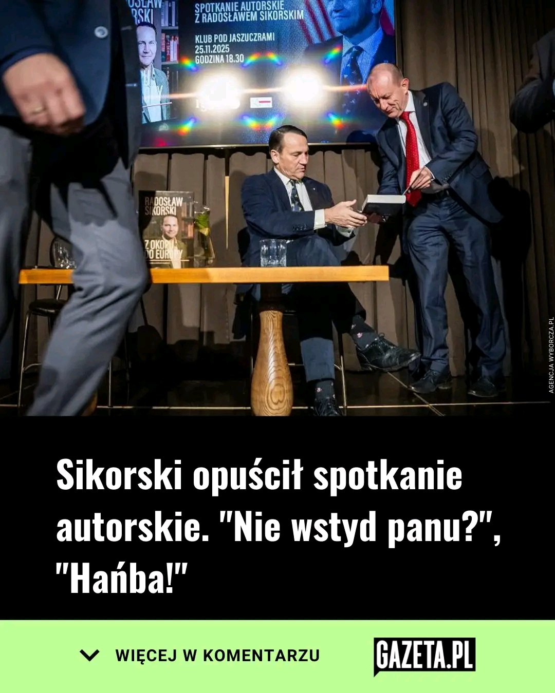 Skandal”, “Jak panu nie wstyd?” – takimi okrzykami ludzie zakłócili spotkanie z Radosławem Sikorskim. Do incydentu doszło w Krakowie, a wiceminister, szef MSZ opuścił spotkanie wcześniej w asyście ochrony.