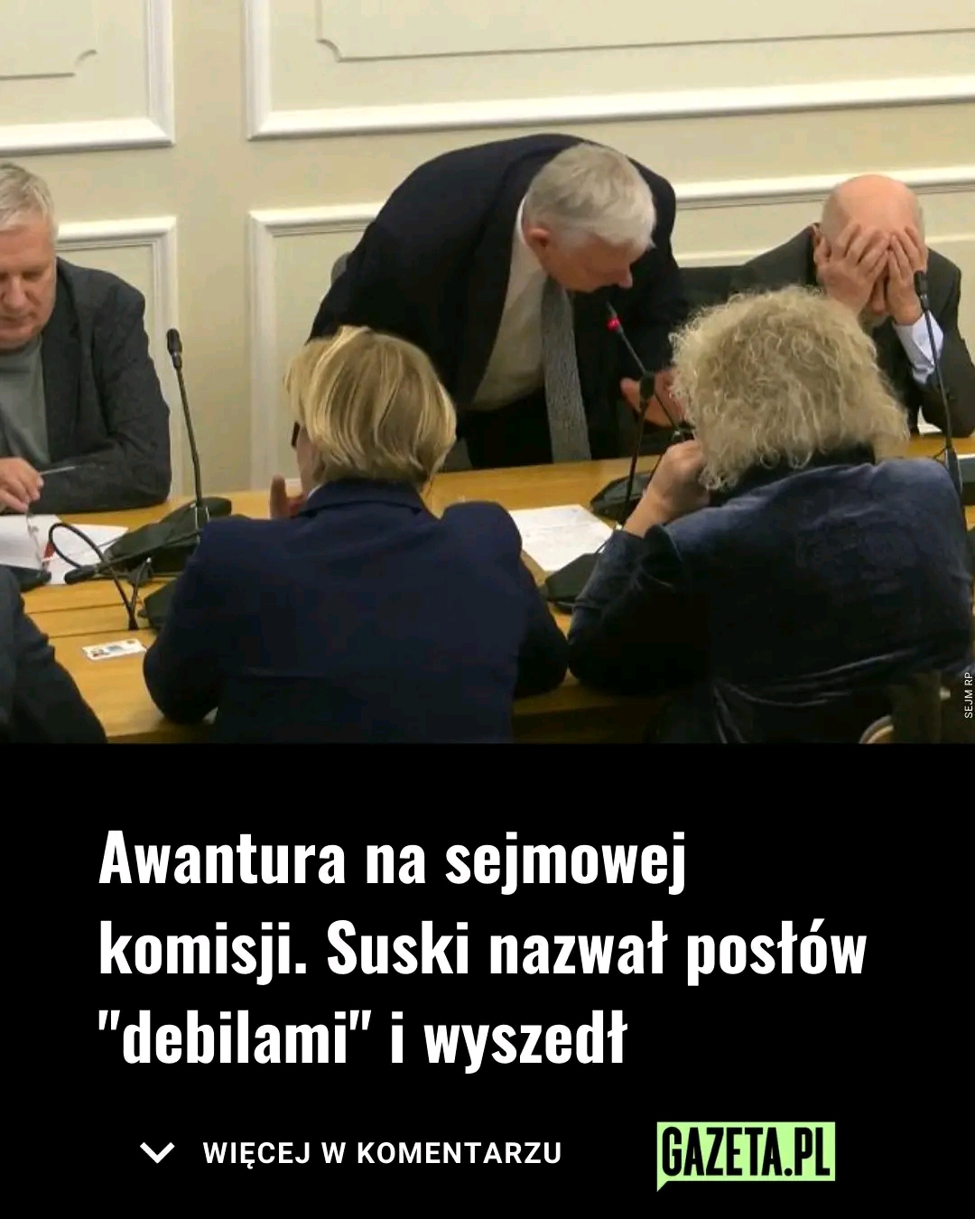 Na posiedzeniu komisji kultury posłowie rozpatrywali wniosek o odwołanie przewodniczącego. W pewnym momencie Marek Suski nie wytrzymał. – Do widzenia państwu. Do widzenia, debile – powiedział do parlamentarzystów, po czym wyszedł.