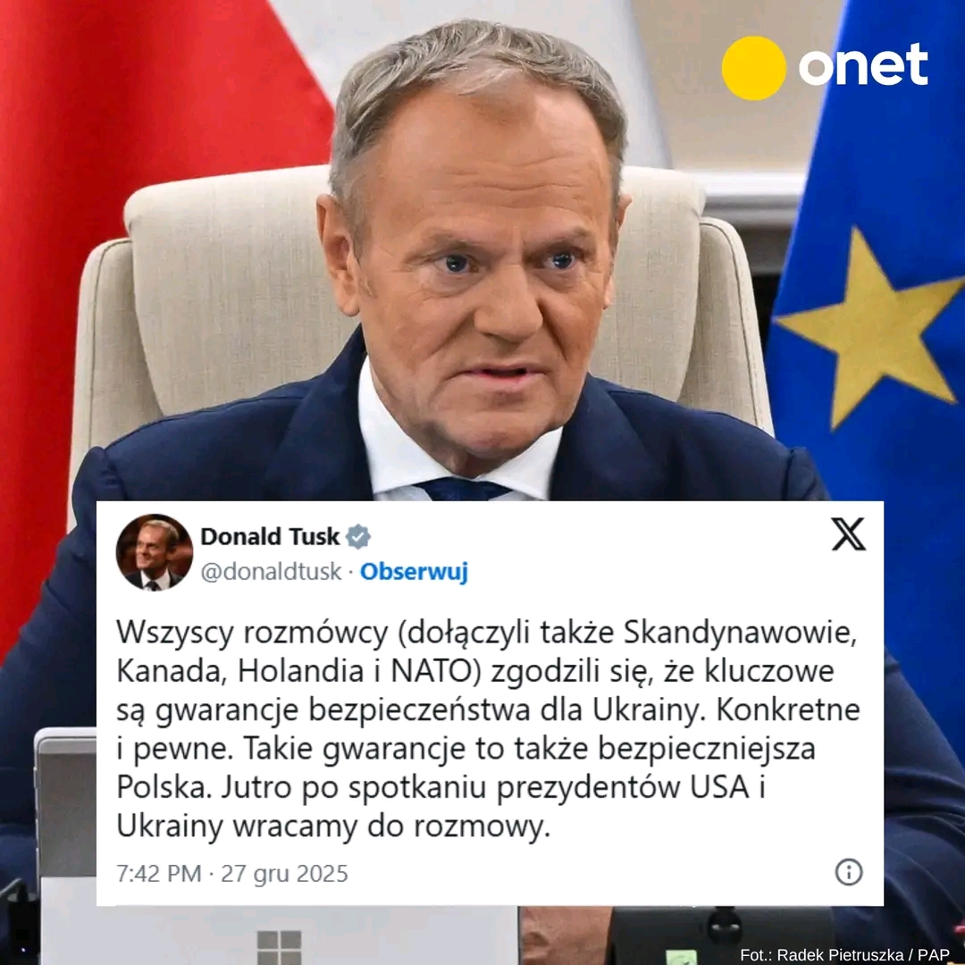 Donald Tusk podkreślił, że wspomniane, pewne gwarancje dla Ukrainy “to także bezpieczniejsza Polska”. “Jutro po spotkaniu prezydentów USA i Ukrainy wracamy do rozmowy” — zapowiedział szef rządu.