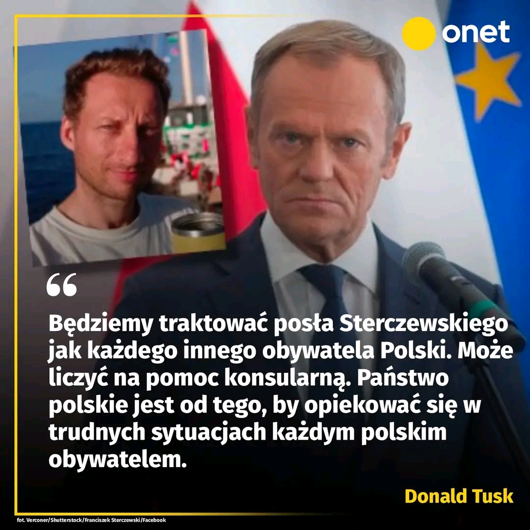 Przyglądam się tej sprawie. Konsul generalny jest już w miejscowości Aszdod, czyli w miejscu, do którego Izrael skierował uczestników tego rejsu. Będziemy traktować posła Sterczewskiego jak każdego innego obywatela Polski. Może liczyć na pomoc konsularną. Państwo polskie jest od tego, by opiekować się w trudnych sytuacjach każdym polskim obywatelem. Nie dlatego, że jest posłem, nie dlatego, że postanowił uczestniczyć w tej morskiej demonstracji przeciwko Izraelowi. To jest decyzja pana posła Sterczewskiego. Moim zadaniem nie jest ocenianie jego motywacji, tylko zapewnić opiekę konsularną, tak jak każdemu polskiemu obywatelowi w tej sytuacji — stwierdził premier.