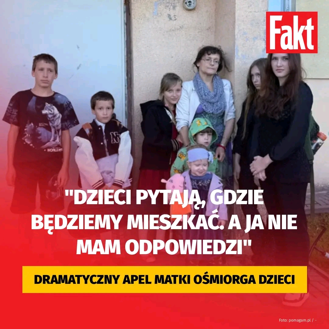Pani Rozalia, samotna matka ośmiorga dzieci, znalazła się w sytuacji, która chwyta za serce. Rodzina z gminy Lipno (woj. kujawsko-pomorskie) musi do końca października opuścić wynajmowane mieszkanie. Co dalej? Nikt nie chce wynająć lokalu tak licznej rodzinie, a alternatyw brak. Jedyną nadzieją na bezpieczną przyszłość jest zakup domu, ale cena — 400 000 zł — to dla nich kwota nieosiągalna bez pomocy ludzi o wielkich sercach. Trwa zbiórka, a czas ucieka…