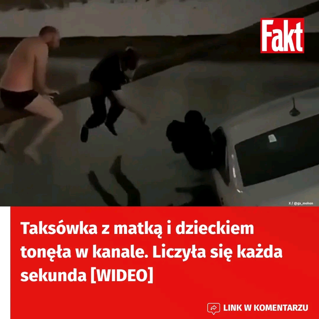 Na opublikowanych wideo widać, jak grupa mężczyzn błyskawicznie reaguje na sytuację. Jeden z nich wspiął się na belkę nad kanałem, by dotrzeć do tonącego pojazdu. Inni ratownicy ustawili się tak, aby wspólnie wydobyć dziecko z samochodu, zanim białe auto całkowicie zniknęło pod wodą.