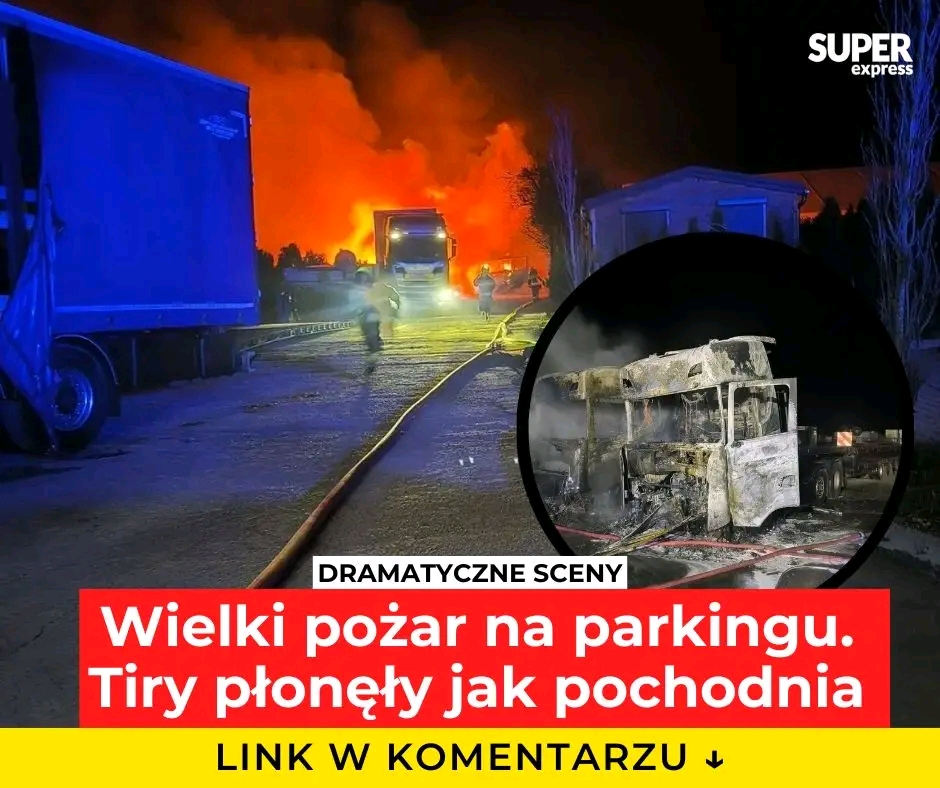 Bródek. Wielki pożar na parkingu. Tiry płonęły jak pochodnia. Dramatyczne sceny