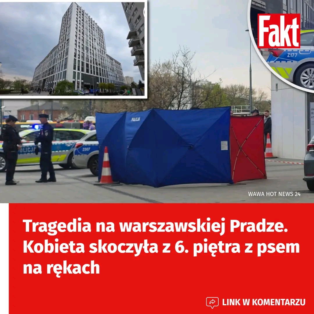 W czwartkowe popołudnie (16 kwietnia) pod blokiem przy ul. Grochowskiej 207 w Warszawie odnaleziono ciało kobiety. Jak wynika z ustaleń, wypadła ona z 6. piętra budynku. W chwili zdarzenia nie była sama – towarzyszył jej pies. Uderzenie o ziemię okazało się śmiertelne zarówno dla kobiety, jak i dla zwierzęcia. Na miejsce natychmiast wezwano służby, jednak na ratunek było już za późno.