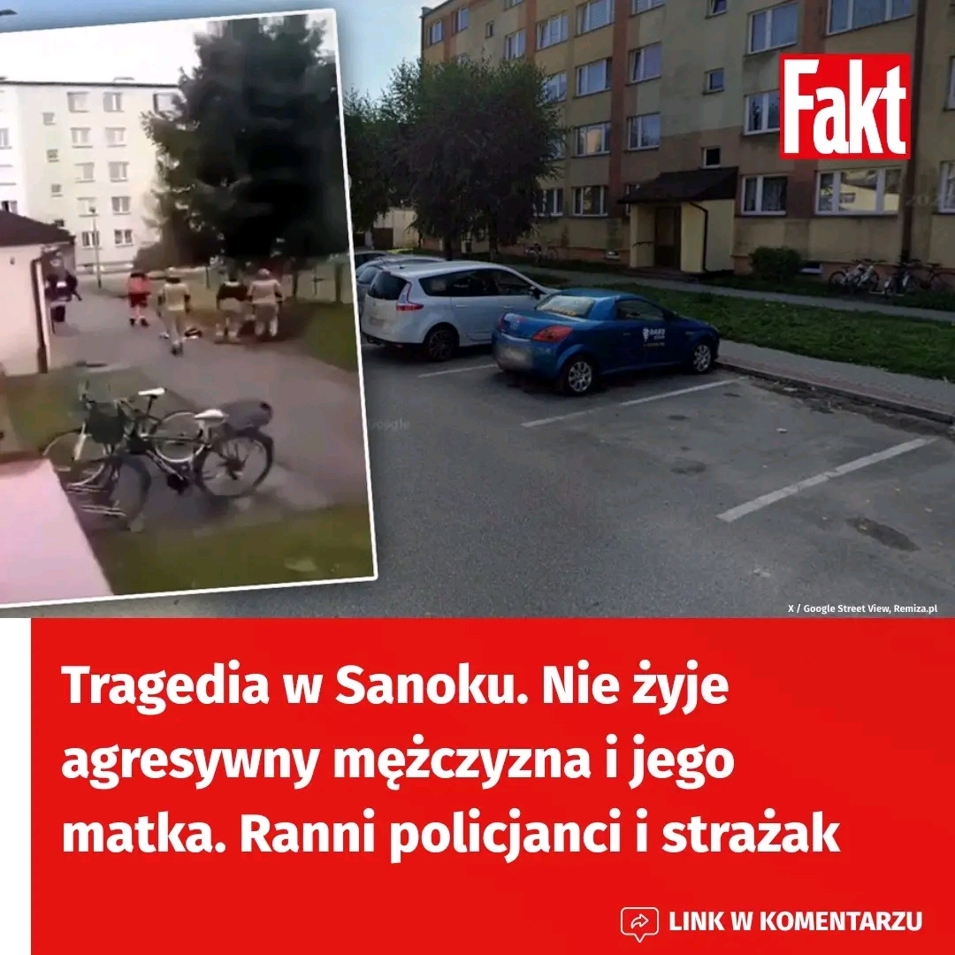 Agresywny mężczyzna zabarykadował się ze swoją matką w mieszkaniu w Sanoku na Podkarpaciu. Gdy włączył się czujnik gazu, służby zdecydowały o siłowym wejściu do środka. W trakcie interwencji mężczyzna zaatakował policjantów i strażaka ostrym narzędziem. Funkcjonariusze sięgnęli po broń. Napastnik zginął. W mieszkaniu znaleziono ciało kobiety. Ranni zostali dwaj policjanci i strażak. Ten ostatni został przetransportowany śmigłowcem LPR do szpitala w Rzeszowie. Na miejscu wciąż trwają czynności z udziałem prokuratury.