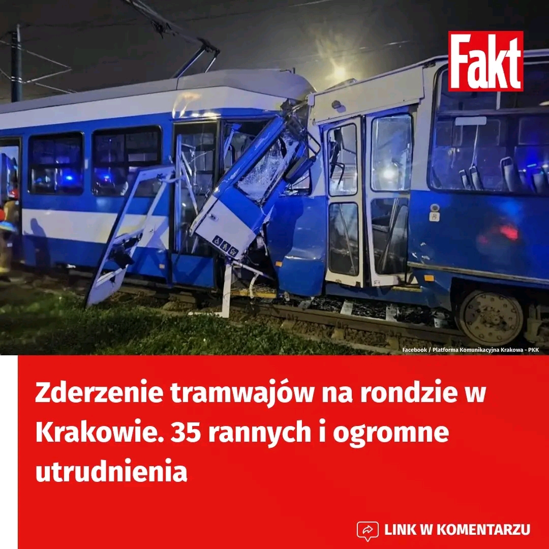 Dramatyczne zderzenie tramwajów w Krakowie wywołało chaos komunikacyjny. 35 osób zostało rannych, a służby wciąż pracują na miejscu.