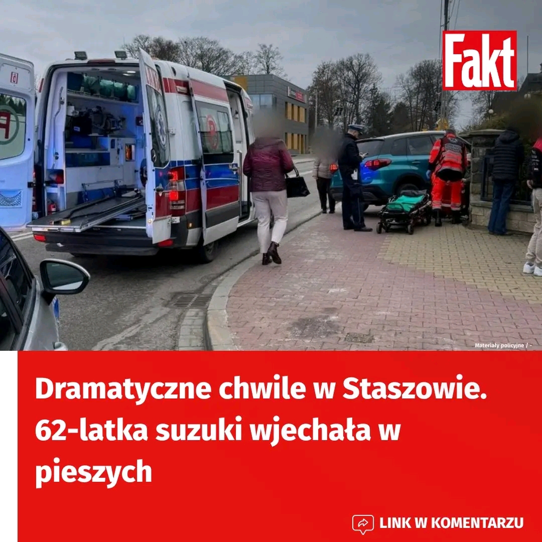 Do tego zdarzenia doszło dzisiaj o g. 14.35 przy Langiewicza. Kierująca suzuki skręcając w prawo, wjechała na chodnik, po którym poruszały się dwie osoby — 47-letniego mężczyznę i 54-letnia kobietę — mówi w rozmowie z “Faktem” st. posterunkowy Daria Juda, z Komendy Powiatowej Policji w Staszowie.