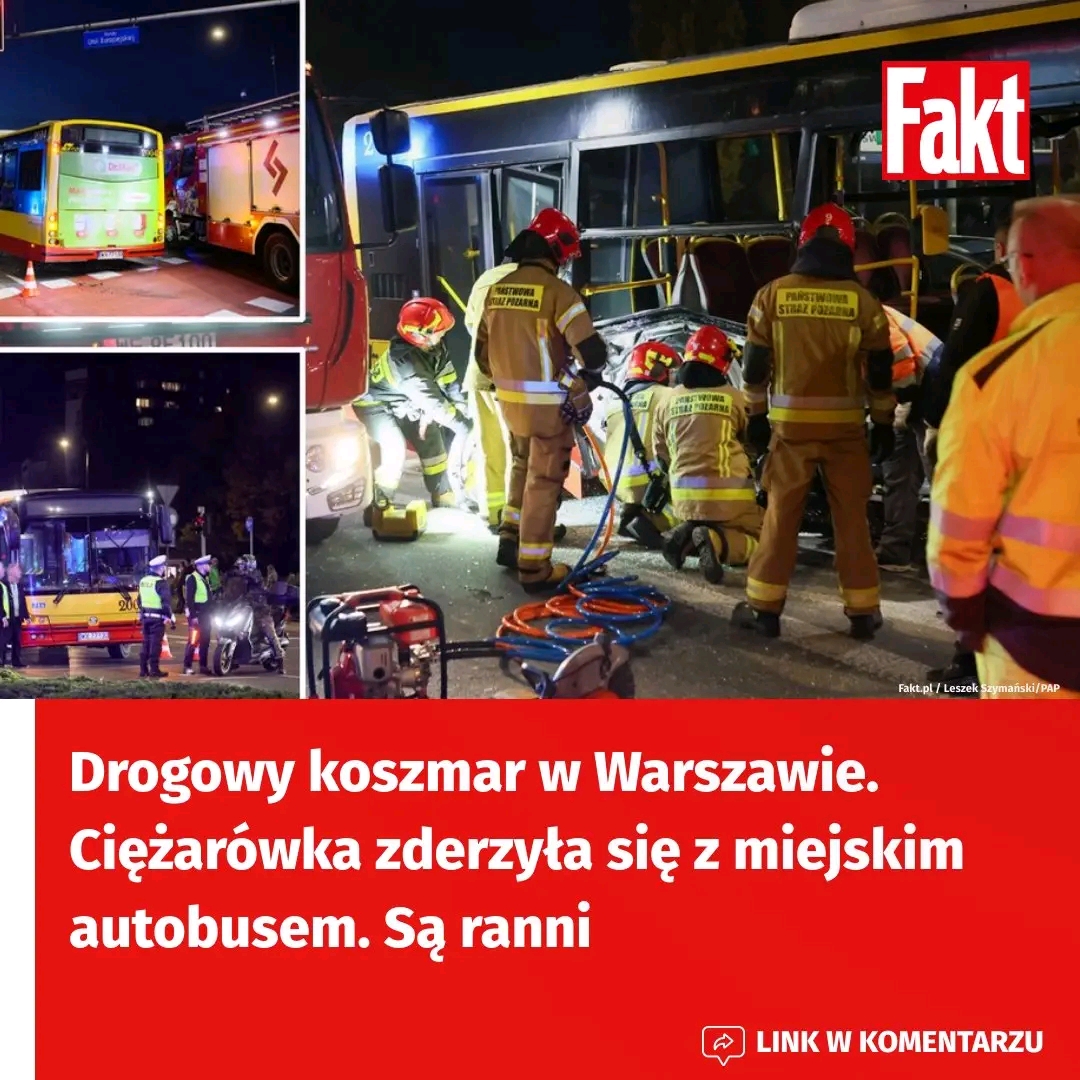 Informację o wypadku przekazało warszawskie pogotowie ratunkowe. “O godz. 16.54 ciężarówka uderzyła w autobus ZTM. Na miejscu osiem karetek pogotowia. Trwa akcja ratunkowa” — podano na portalu X.