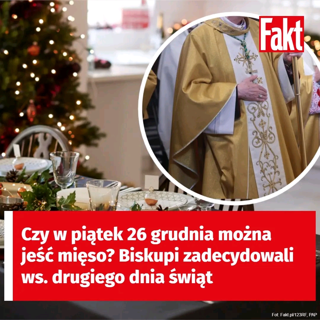 Drugi dzień Bożego Narodzenia w tym roku wypada w piątek — i nagle przy świątecznym stole pojawia się pytanie: schabowy i bigos są “dozwolone”, czy jednak obowiązuje wstrzemięźliwość? Część biskupów wydała już dyspensy na 26 grudnia, ale stawia warunek: zamiast mięsa ma być konkretna praktyka — modlitwa albo uczynek miłosierdzia.