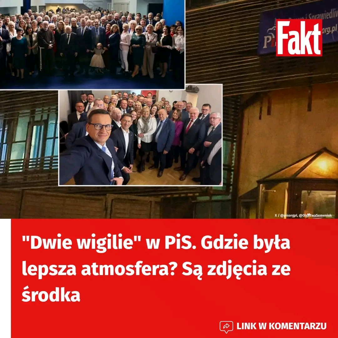 Spotkanie opłatkowe PiS odbyło się we wtorek (16 grudnia) w siedzibie partii przy ul. Nowogrodzkiej w Warszawie. Kilka dni przed przyjęciem media obiegła informacja, że Mateusz Morawiecki organizuje w tym samym dniu konkurencyjne wydarzenie.