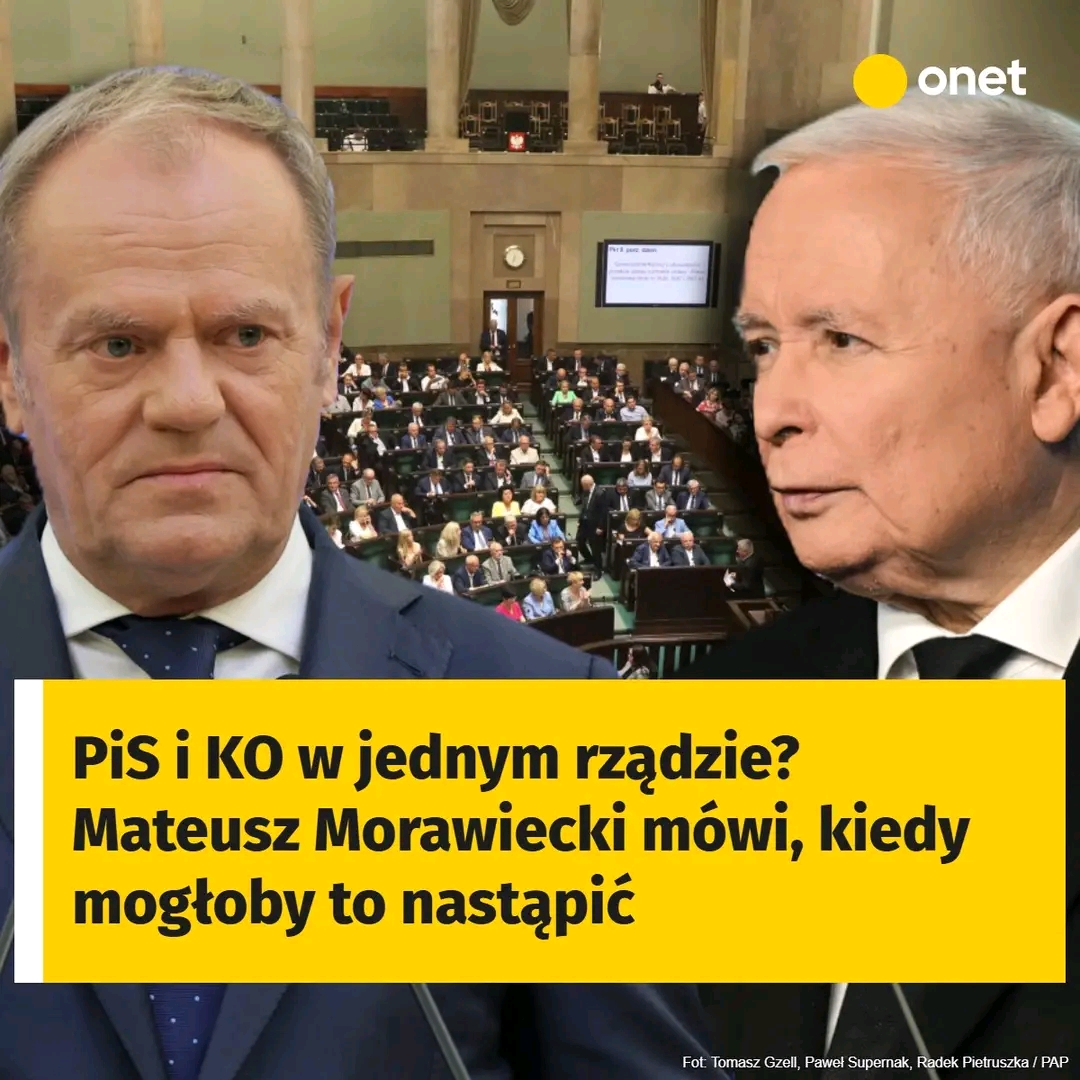 Wiceprezes PiS Mateusz Morawiecki był w ubiegłym tygodniu gościem podcastu Grzegorza Sroczyńskiego z Gazeta.pl. Były premier został zapytany, czy wyobraża sobie, że może nadejść taki dzień, że partie Jarosława Kaczyńskiego i Donalda Tuska będą wspólnie rządzić. — Wyobrażam sobie rząd jedności narodowej — odparł Morawiecki, wskazując, że mogłoby to nastąpić w obliczu militarnego zagrożenia bezpieczeństwa Polski z zewnątrz.
