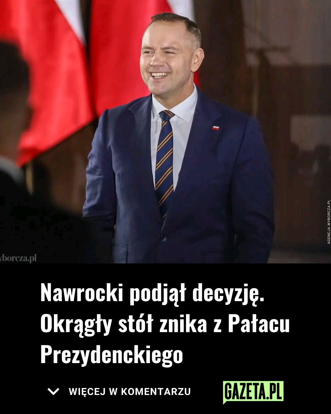 Niezależnie od tego, jak oceniamy okrągły stół, to z całą pewnością Pałac Prezydencki nie jest miejscem, w którym powinien on stać. Oddajemy go historii. Od 2027 będą mogli podziwiać go odwiedzający Muzeum Historii Polski – przekazał Karol Nawrocki. – Dziś wolną, suwerenną, niepodległą Polskę stać na więcej niż idealizowanie okrągłego stołu. Trzeba o nim pamiętać, ale nie oddawać mu hołd w Pałacu Prezydenckim. Dziś skończył się w Polsce postkomunizm. Niech żyje wolna Polska! – powiedział.