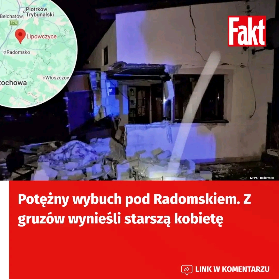Do zdarzenia doszło około godz. 5.30. W domu mieszkała samotnie 88-letnia kobieta. Eksplozja była tak potężna, że usłyszeli ją bliscy seniorki, którzy mieszkają niedaleko. To właśnie oni jako pierwsi rzucili się na pomoc. — Gdy na miejsce dotarły służby ratunkowe, kobieta była już wyniesiona na zewnątrz — relacjonuje dla “Faktu” st. kpt. Marek Jeziorski z Komendy Powiatowej Państwowej Straży Pożarnej w Radomsku.