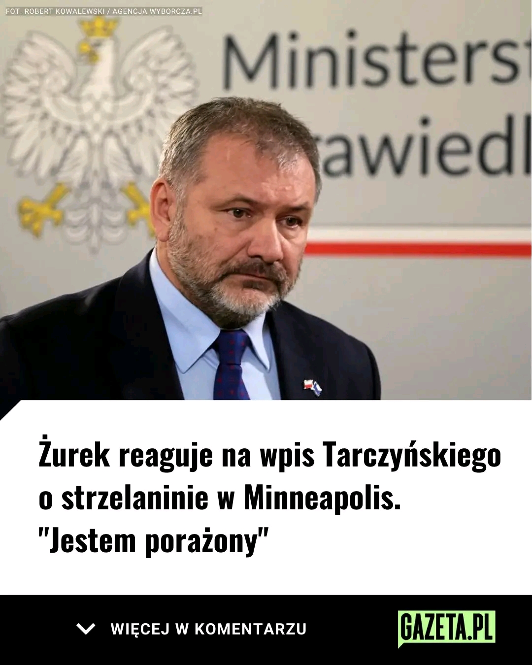 Minister sprawiedliwości Waldemar Żurek skomentował wpis Dominika Tarczyńskiego na temat strzelaniny w Minneapolis. Europoseł PiS pochwalił agentów amerykańskiego urzędu imigracyjnego, którzy zastrzelili Alexa Prettiego. Żurek powiedział, że “jest porażony zachwytem” Tarczyńskiego.
