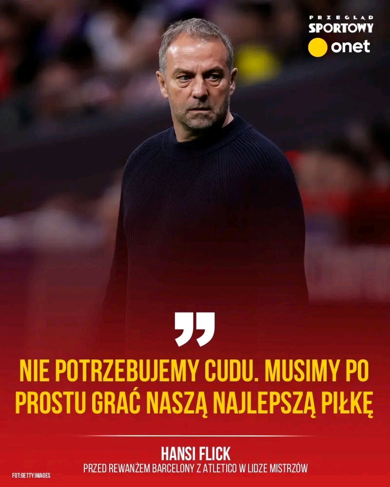 Flick wykazuje ducha walki przed meczem. — Nie potrzebujemy cudu. Musimy po prostu grać naszą najlepszą piłkę. Możliwości jest wiele. Wiem, że Atletico to fantastyczna drużyna. My też, będziemy walczyć — mówi.