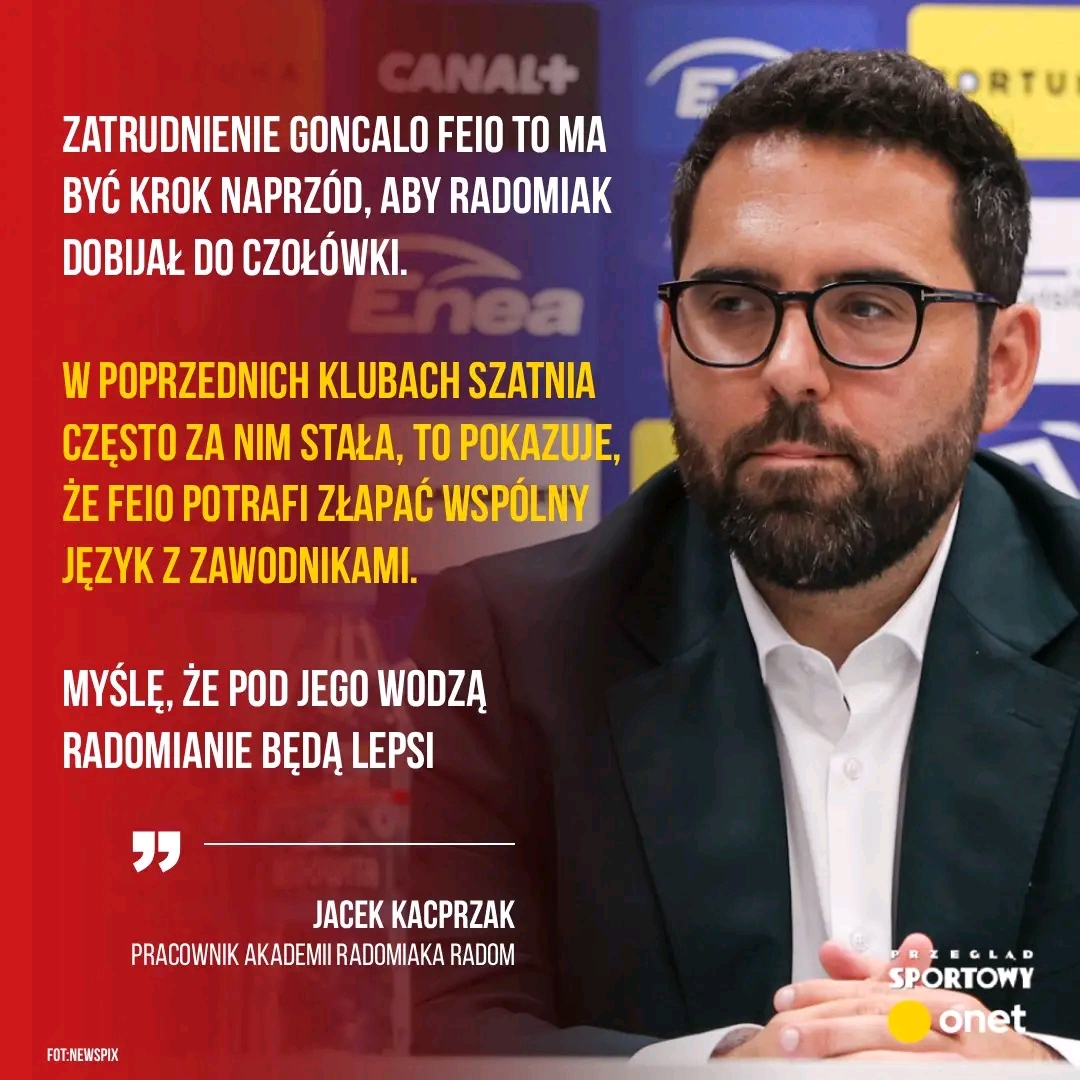 Plany zarządu, aby grać o coś więcej, przeważyły. W końcu kiedyś mówiło się o europejskich pucharach. A Radomiak ma całkiem niezły skład. Zatrudnienie trenera Feio to ma być krok naprzód, aby zespół dobijał do czołówki — tak zmianę trenera i zatrudnienie Goncalo Feio tłumaczy Jacek Kacprzak. Były piłkarz Radomiaka, a dziś pracownik akademii tego klubu komentuje też charakter Portugalczyka. Z jakich powodów jest optymistą?