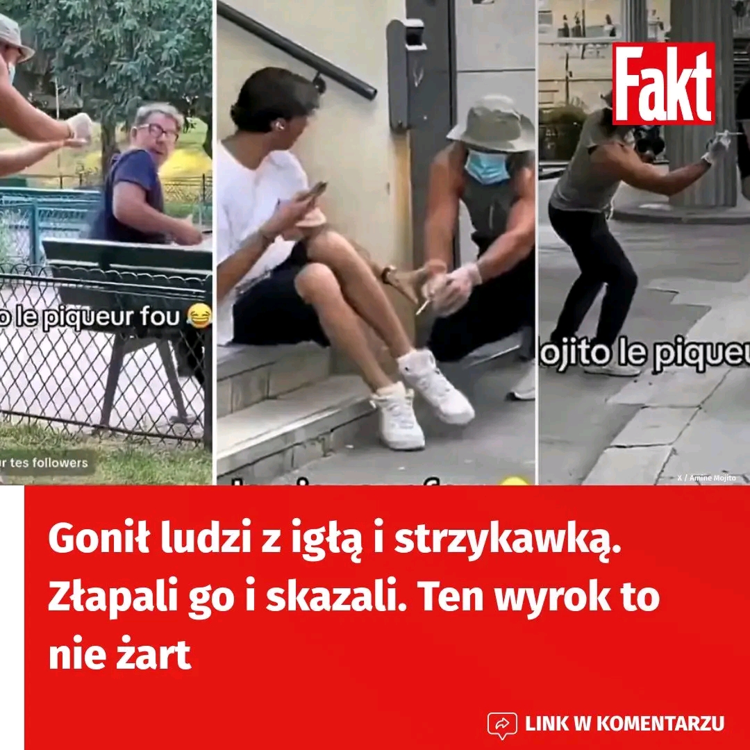 Podchodził z zaskoczenia, udawał, że wbija strzykawkę, a potem uciekał, wszystko nagrywając. Chciał atencji, lajków i viralowych zasięgów. Zamiast śmiechu widzów, wywołał panikę i strach na ulicach. Teraz francuski influencer Amine Mojito (naprawdę Illan Magneron) poniesie za to konsekwencje. Sąd postanowił osadzić go za kratami na pół roku.