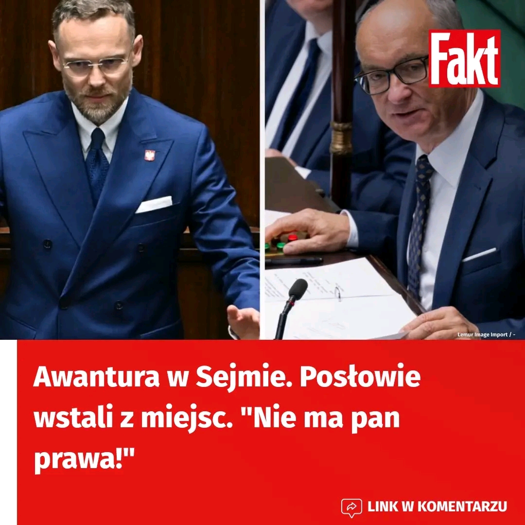 — Prezydent Nawrocki jest zbudowany na idei wolnej, suwerennej, dumnej Polski. Pan panie marszałku jest zbudowany na idei Polskiej Zjednoczonej Partii Robotniczej. Nie ma pan prawa tak mówić do prezydenta! — irytował się Bogucki. Posłowie PiS wstali i zaczęli krzyczeć “precz z komuną”.
