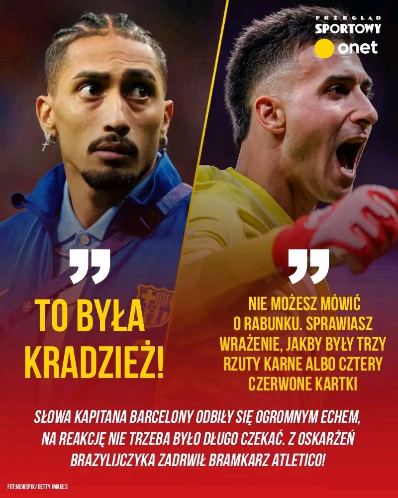 To była kradzież — grzmiał po odpadnięciu z Ligi Mistrzów Raphinha. Słowa kapitana Barcelony odbiły się ogromnym echem, na reakcję nie trzeba było długo czekać. Z oskarżeń Brazylijczyka zadrwił bramkarz Atletico Madryt. Ale zdjęcie, które niesie się po sieci, wzbudza ogrom kontrowersji. Wystarczy spojrzeć.