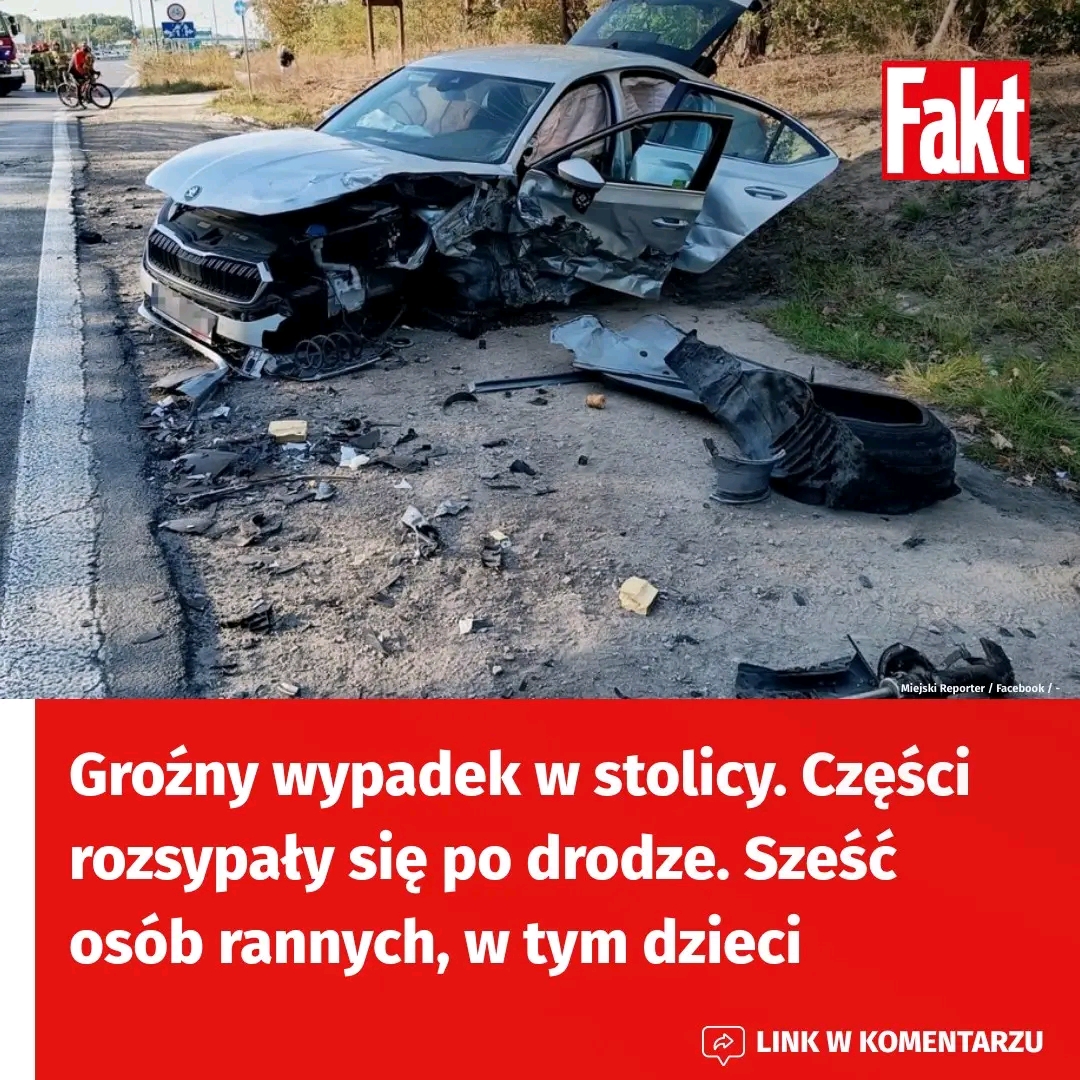 Groźny wypadek w stolicy. Części rozsypały się po drodze. Sześć osób rannych, w tym dzieci
