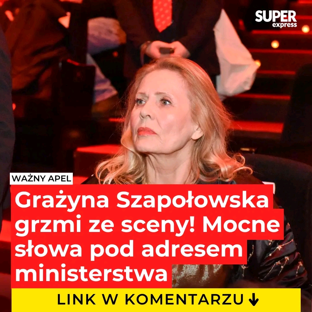 Grażyna Szapołowska grzmi ze sceny! Mocne słowa pod adresem ministerstwa