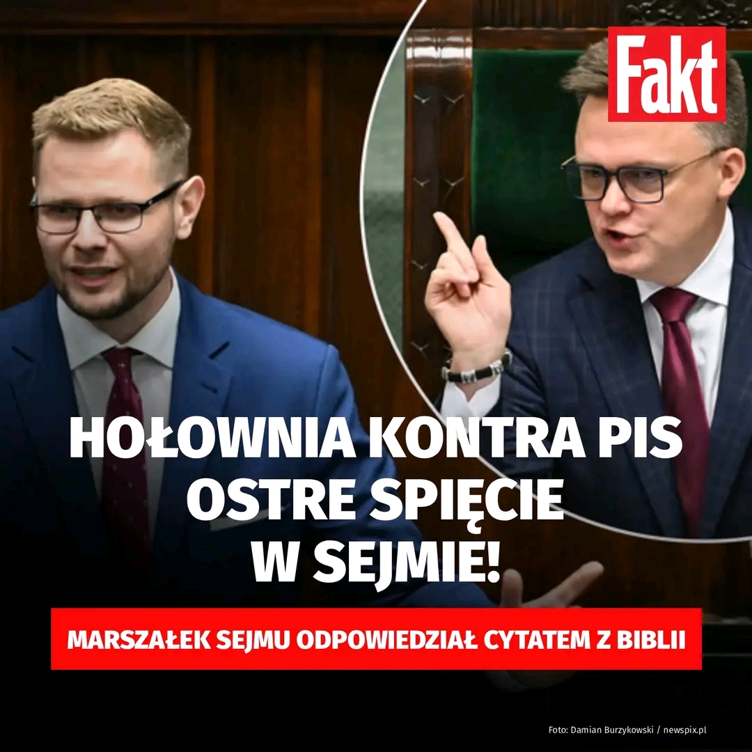 To jest chamstwo, a nie debata parlamentarna — stwierdził Szymon Hołownia po wystąpieniu Michała Wosia. Marszałek Sejmu zaapelował: “od świń się w tej izbie nie wyzywamy”. Odpowiedział posłowi PiS cytatem z Biblii. — I co, przyjemnie? — dodał.