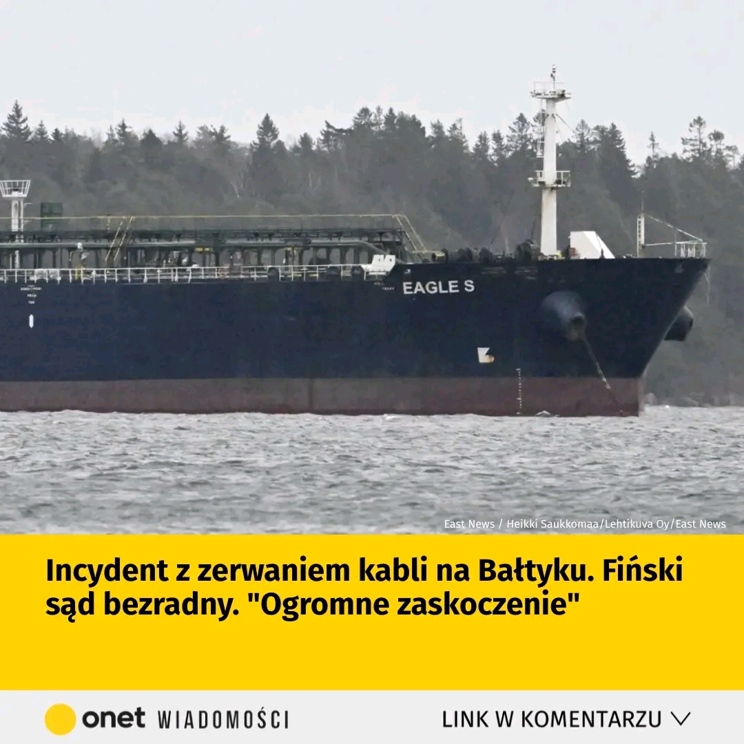 Sąd w Helsinkach orzekł w piątek, że fiński kodeks karny nie ma zastosowania w sprawie załogi tankowca Eagle S podejrzanej o zerwanie podmorskich kabli na Bałtyku. Jednostka należy do tzw. floty cieni wykorzystywanej do omijania zachodnich sankcji nałożonych na Rosję po jej inwazji na Ukrainę. “Ogromne zaskoczenie w tak ważnej sprawie” — tak decyzję sądu komentują fińskie media.