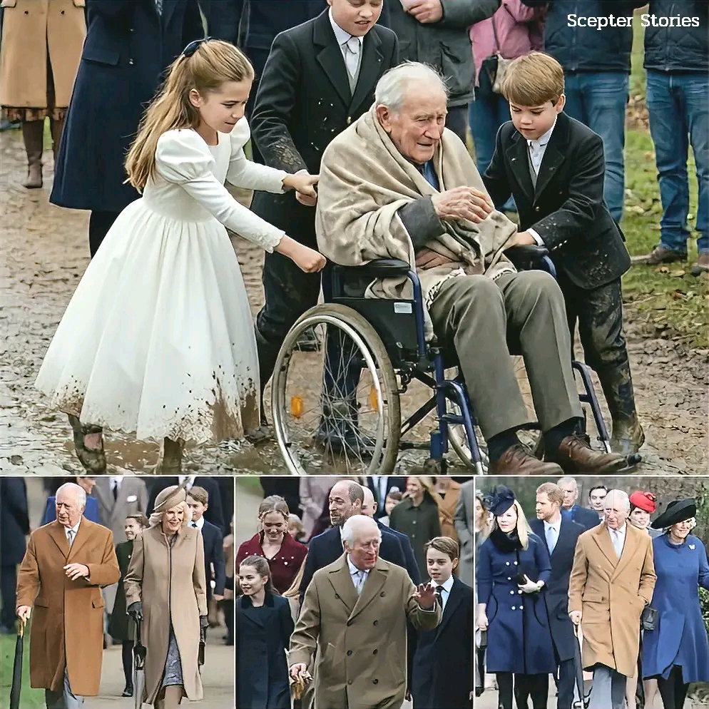 On what began as a simple winter walk, three of Britain’s most recognizable young royals—Prince George, Princess Charlotte, and Prince Louis—turned an ordinary afternoon into an extraordinary display of empathy. Far from palace balconies and ceremonial events, the siblings reportedly rushed to assist an elderly man whose wheelchair had become stuck in thick mud along a freezing park pathway. Witnesses described the scene as spontaneous, heartfelt, and deeply moving.